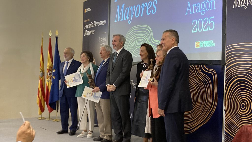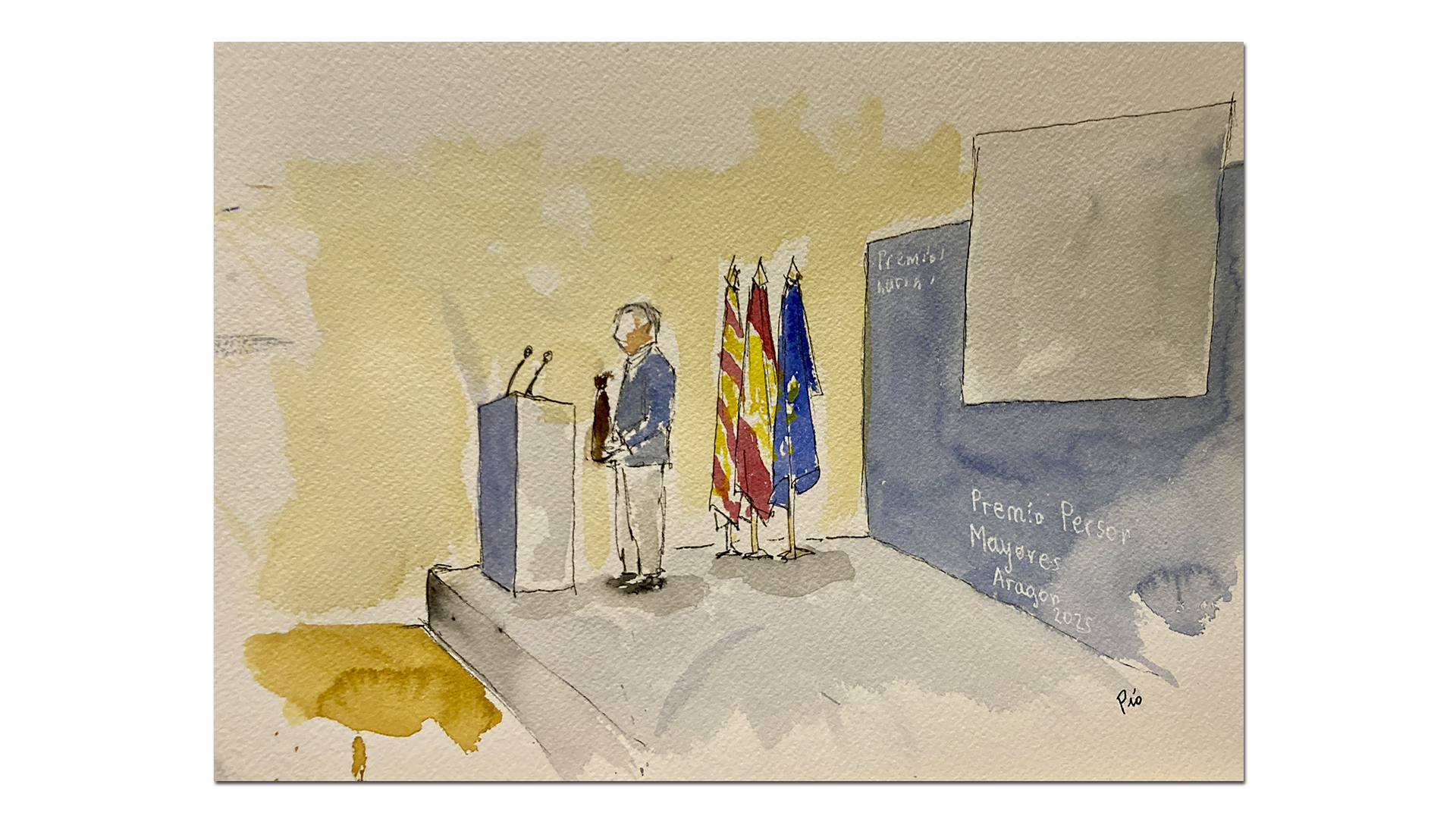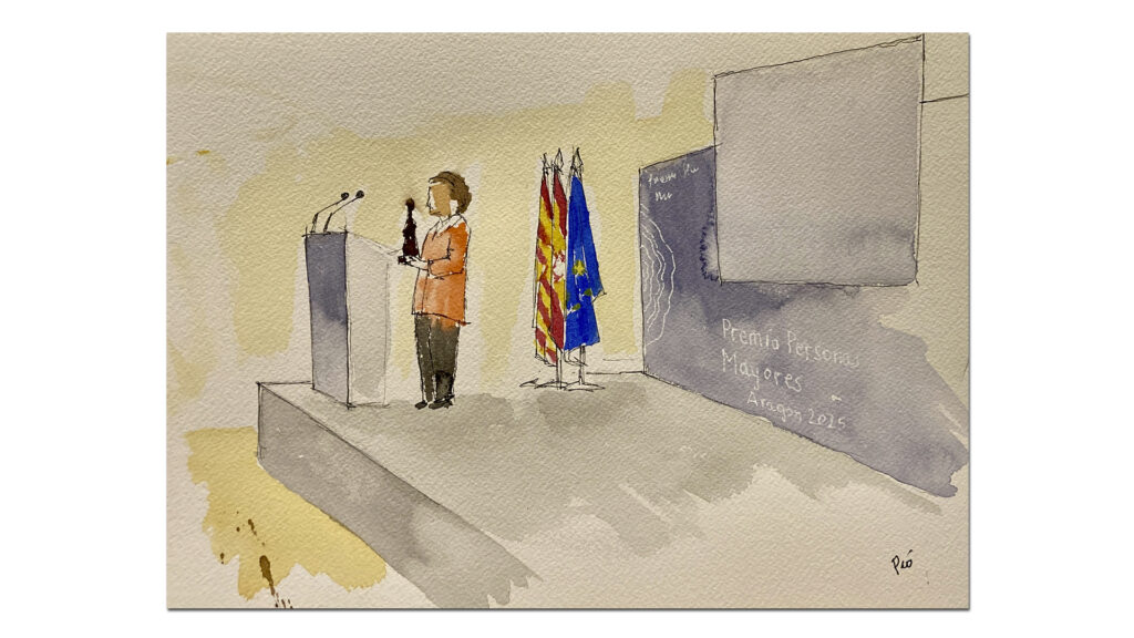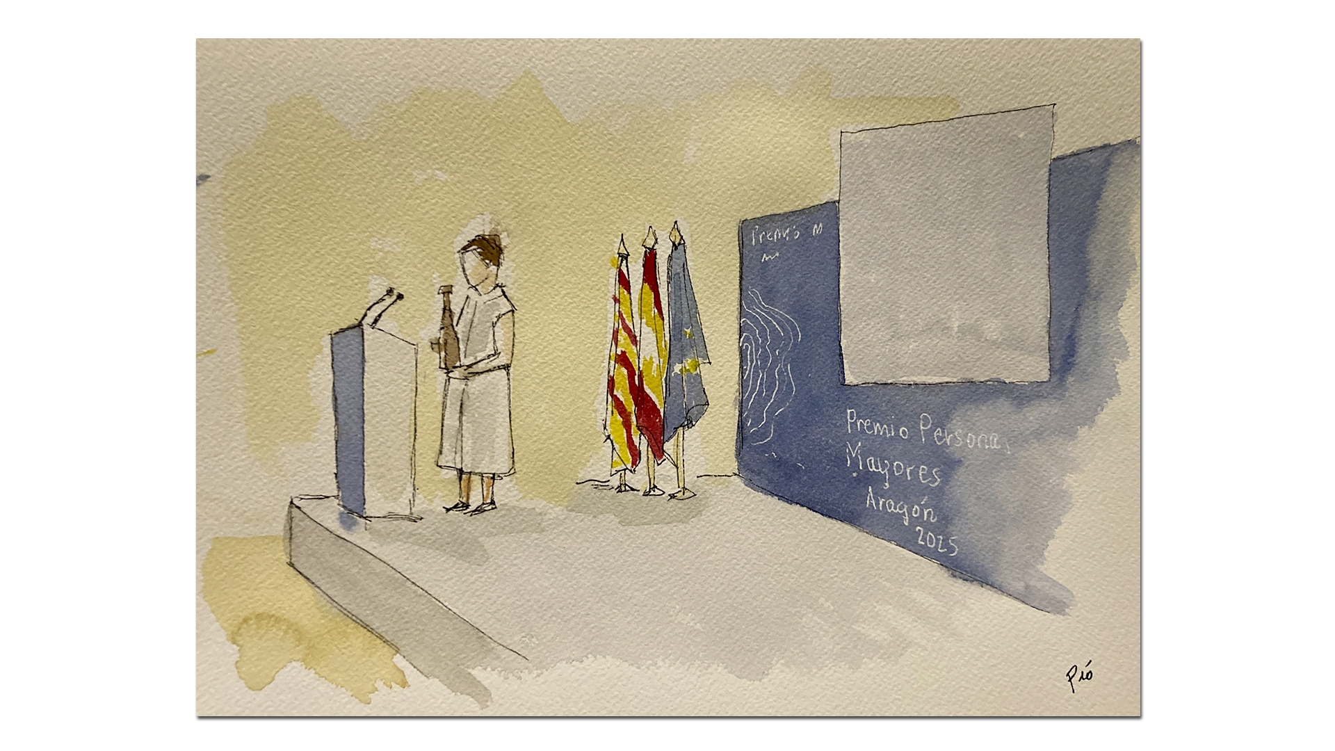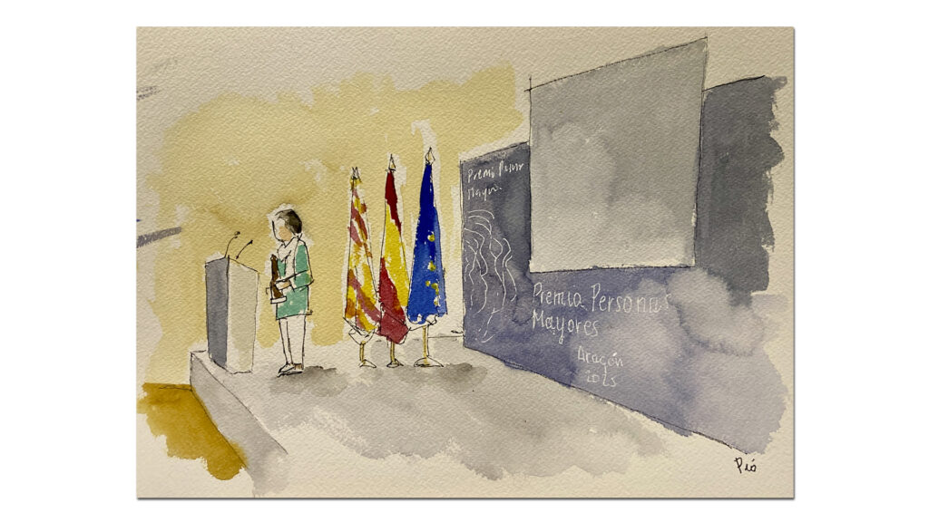 Pintura en directo como regalo a los ganadores de los premios Pesonas Mayores de Aragón, otorgados por el Gobierno de Aragón.